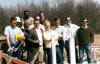 The folks are, from left to right; Bob Kinder (the upstate's best radio/tv tower guy for years), one of his crew (in the hard hat), Ted Love (overnight jock on WORD forever), Tony Brooks (with jacket and drink in hand) Bill Alexander (sunglasses) Mike Brooks (Tony's son), yours truly (CJ), Mark Kruea (was the WORD news director), I think Public Info guy for the City of Myrtle Beach, SC now, Phil Tuck (engineer now in Jacksonville, Florida and who still drives to the Beacon for tea), and Don Crane (consulting engineer still in Spartanburg). The sections of orange and white are the remains of tower one, that had the famous neon WORD 910 sign on it. The woods behind the guys are to the East where the Asheville Highway runs North/South. I-85 would be to the right in this shot. Just click on it for the full size picture. -CJ 5.6.2008